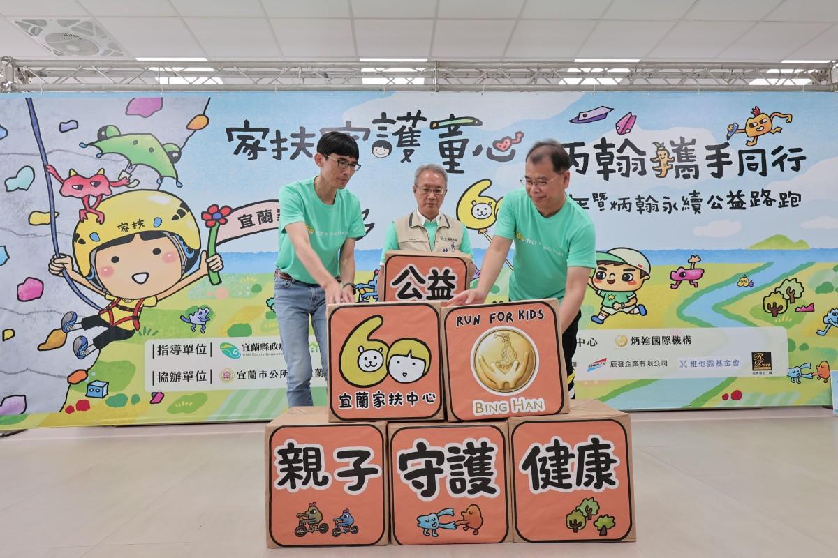 宜蘭家扶中心在蘭陽平原深耕服務邁入第六十個年頭,與炳翰國際機構、宜蘭縣政府攜手號召民眾一起用步伐見證蘭陽扶幼公益情。宜蘭家扶為了紀念這段凝聚無數社會善意的光輝歲月,在炳翰國際機構以及宜蘭縣政府的支持下,將於今年10月3日(六)辦理「家扶守護童心、炳翰攜手同行」宜蘭家扶中心60周年暨炳翰永續公益路跑活動,於今日(4/22)宣傳記者會上向大眾發出召集令,號召3000位的民眾參與此公益路跑,期盼透過民眾/親子共跑,讓公益精神代代相傳,攜手奔向下一個共好的六十年。