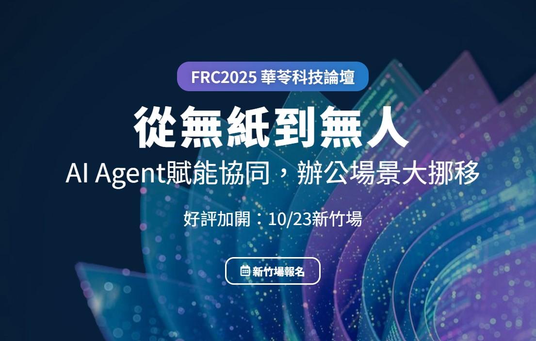 本屆FRC論壇由華苓科技攜手多位產業實務專家與產品技術團隊,深入剖析企業如何從管理視角與技術落地兩方面,同步推進 AI Agent 的導入策略。議程將涵蓋流程設計、企業入口、任務編排、知識運籌、自動化工作平台、AI 資料治理等核心議題,協助企業掌握AI驅動的人機共作平台建構要領,真正落實 AI 賦能效益,讓與會者能實際體驗 AI Agent 如何在日常工作中自動接手繁瑣任務、即時應對變化情境,進一步為組織創造更高價值。
