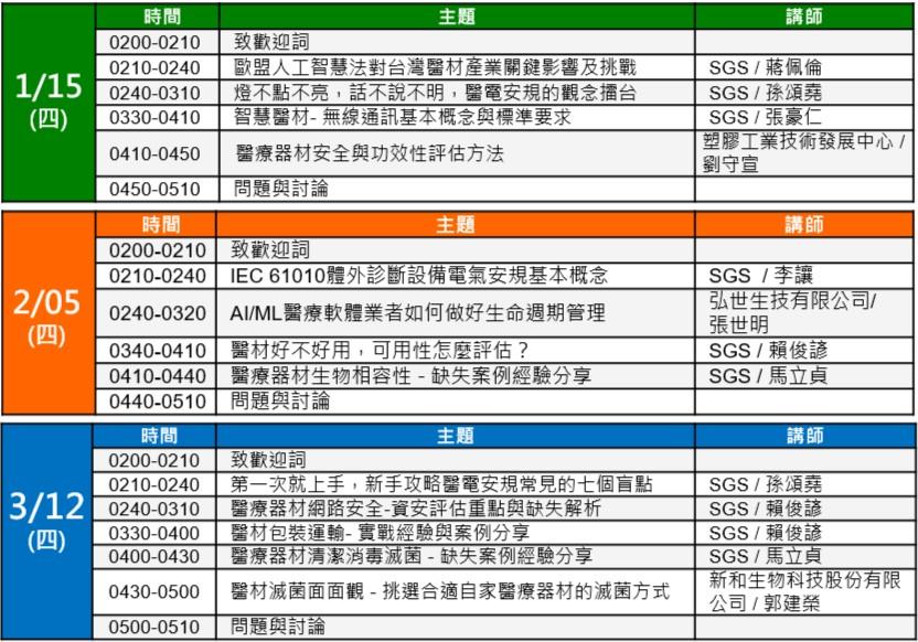 3/12:醫電安規法遵策略、醫材包裝與清消滅常見問題、醫材滅菌挑戰
