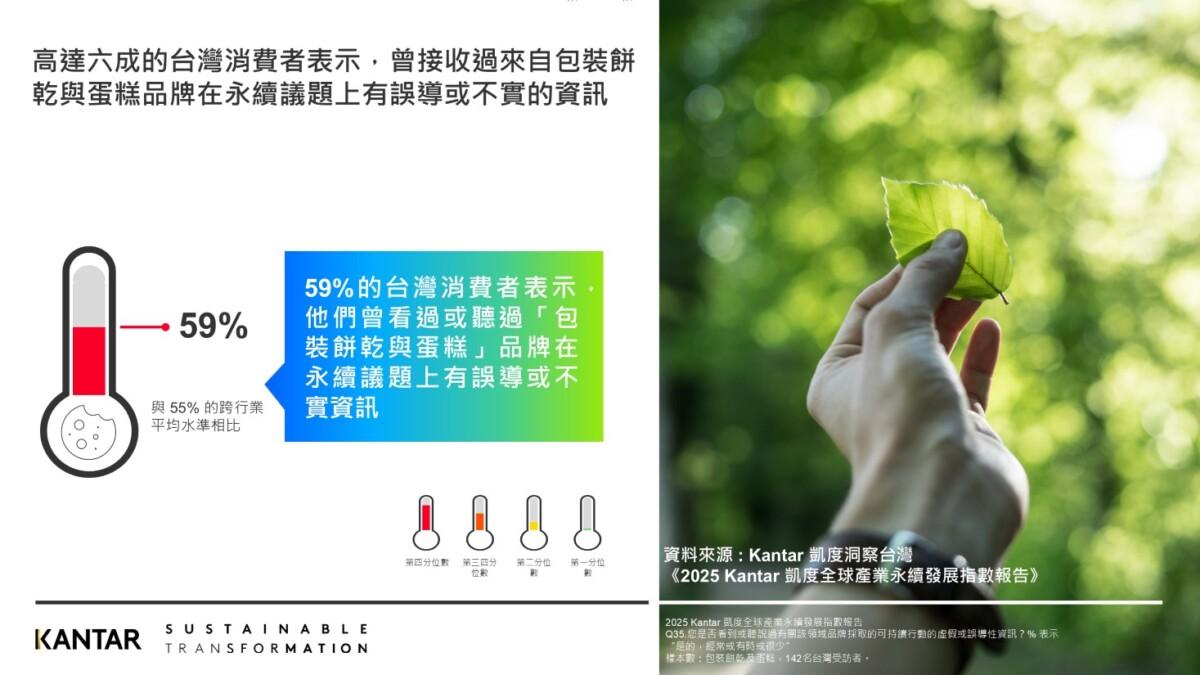 2025 Kantar 凱度全球產業永續發展指數報告-近六成的台灣消費者認為「包裝餅乾與蛋糕」品牌在永續議題上有誤導或不實資訊