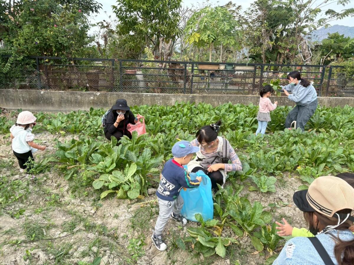 活動首站來到美濃農田,孩子們親手拔起一根根飽滿的白蘿蔔,透過實際觸摸泥土、觀察作物生長,認識農作物從土地到餐桌的過程,不僅培養生活知能,也增進對農業與食物來源的理解。孩子們在田間奔跑、合作分享,展現滿滿的成就感與喜悅。